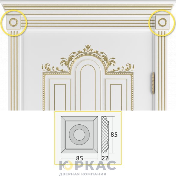 Розетка дверная Эстель d54 Белая эмаль патина золото