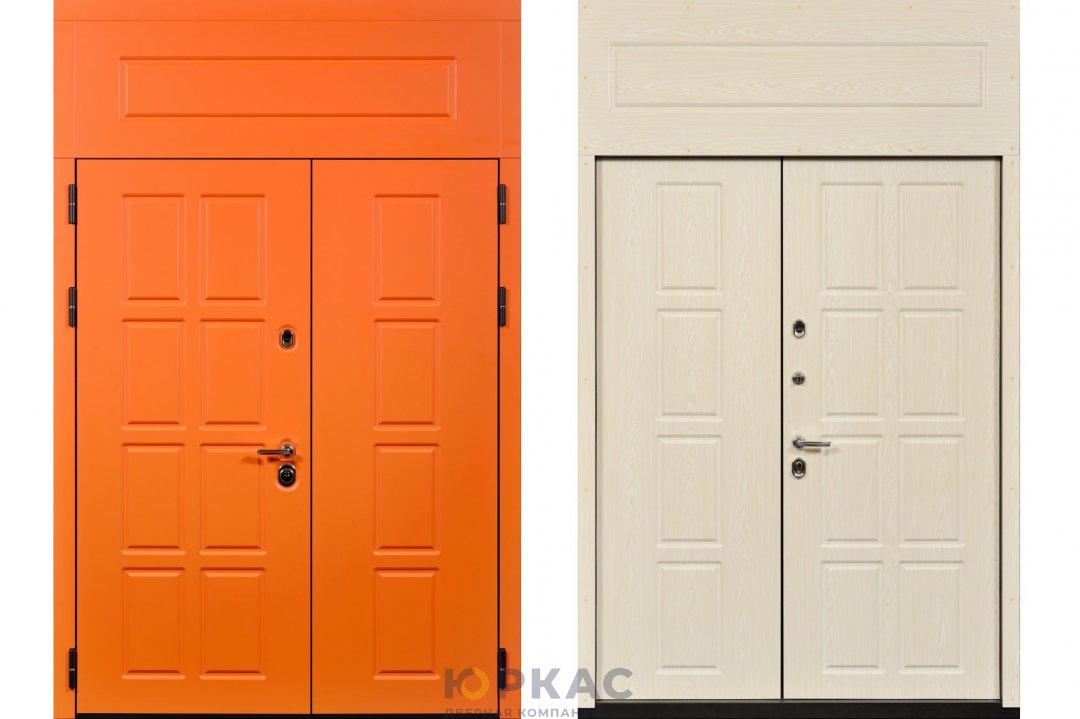Дверь входная Сталлер дверная группа желто-оранжевый / беленый дуб под заказ
