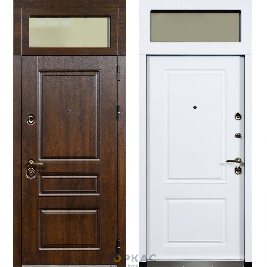 Дверь входная Сталлер с фрамугой Винорит дуб темный + патина черная / Винорит белый под заказ